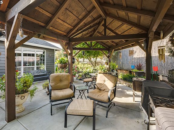 Peace and tranquility with this enchanting garden retreat tucked away in Forest Gale Heights, only minutes from town with convenient access to highways. This home offers a paradise that can’t be matched. The huge multi-level patio provides a beautiful setting at sunrise for meditation and reflection. Enjoy mini orchard with Bartlett, Anjou and Asian Pears, Granny Smith and Honeycrisp Apples and Brooks Plum. You will find Fuyu Persimmon, Ken's Red Kiwi, Seedless Concord and Black Manuka Grapes. Asparagus, artichokes and herbs in the raised beds with fully fenced backyard. Custom hen house / chicken coop. Experience visits from numerous birds year-round. Relax in the backyard hot tub next to the custom-built gazebo. Numerous updates include: Roof (2022), Exterior paint (2023), kitchen updates (2023 and 2024). Every room in this one-level sanctuary is alive with natural light from abundant windows, an open design and vaulted ceilings. Gas fireplace in the living room as well as large custom bookshelf. Massive primary bedroom suite with direct access to the patio, spa and garden. Primary also offers walk-in shower and closet. Enjoy the picturesque mountain views on a walk to Forest Glen Park, the neighborhood children's play park or the many nature trails. Thatcher Dog Park and Ballfields only minutes away. Less than an hour to the beautiful Oregon Coast. OPEN SAT & SUN 11-1
