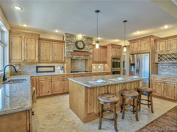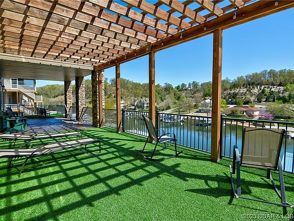 Beautiful, large, lakeside retreat on the quiet part of the lake! This luxury residence located on the 3 mile marker of the Big Niangua is spectacular. Large home with 6 bedrooms and 3 living areas, along with 2 large decks (one of which has been transitioned into a 4 seasons room), plus a 14X63 foot patio that is over 1500 sf. Perfect home for entertaining & large gatherings! If garages are your thing, this one is immaculate. Level driveway with 4 car insulated garage with epoxy floors and 10X8 doors all clean as a whistle. Home sits on double lot with 159 feet of shoreline and a cart path taking you to the firepit and concrete dock with hoist & dock shed. No wake cove location, deep water, east facing, and great views. You will love the large, porcelain tiled decks. Home comes completely furnished including: electronics, decor etc. Nice subdivision, home is located at end of the road so lots of parking, tons of room between docks & room for expansion, this home has it all!