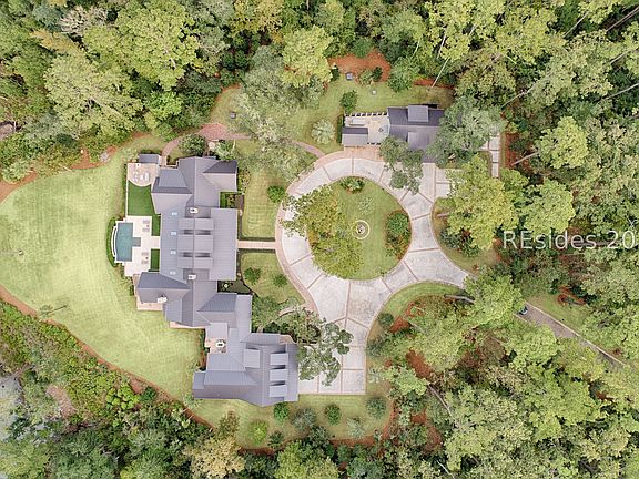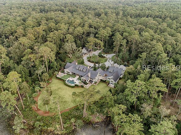 Experience Lowcountry luxury and coastal charm at its finest in this private, gated 10-acre waterfront estate. This preeminent property gracefully commands over 658 feet of the pristine May River shoreline within the highly sought after Palmetto Bluff community. Exuding timeless coastal beauty, the estate-known as Heron Hall-is a true sanctuary where nature and refined living exist in perfect harmony. Offering panoramic water views, impeccable design and endless amenities, this expansive compound includes a main residence and a fully appointed guest house, offering a total of 9 bedrooms, 9 full baths, and 2 half baths - providing both convenience and privacy for family and guests alike. Step inside to discover interiors with unparalleled attention to detail including exquisite millwork, reclaimed wood flooring, and soaring beamed cathedral ceilings. Each living space captures breathtaking panoramic views, blending timeless architecture with modern luxury. The private primary wing is a serene retreat with sweeping river and marsh views, dual spa-inspired bathrooms, and expansive custom closets. The heart of the home is the fully appointed gourmet kitchen, open to the breakfast and family rooms for effortless gathering. Formal and informal living and dining rooms invite both sophisticated entertaining and relaxed day-to-day living. The lower level offers exceptional entertainment spaces with media and game rooms, a temperature-controlled wine room, craft and wrapping room, pressing room, two bunk rooms, and a private guest suite with its own entrance. Outdoor living is equally spectacular - a spacious screened porch, infinity-edge pool, and outdoor fireplace create the ultimate setting to fully embrace the lifestyle this exceptional home affords. Additional highlights include extensive conditioned storage, five oversized garage bays, two additional garages for bicycles and golf carts, smart home technology, advanced security, a central mechanical building, and a full-estate generator. The highly acclaimed Montage resort community of Palmetto Bluff is a 20,000-acre guard-gated community nestled along the May River between Hilton Head Island and Savannah, Georgia. This Lowcountry masterpiece is truly a canvas for a life lived with passion and purpose and has been curated for comfort, hospitality and privacy.
