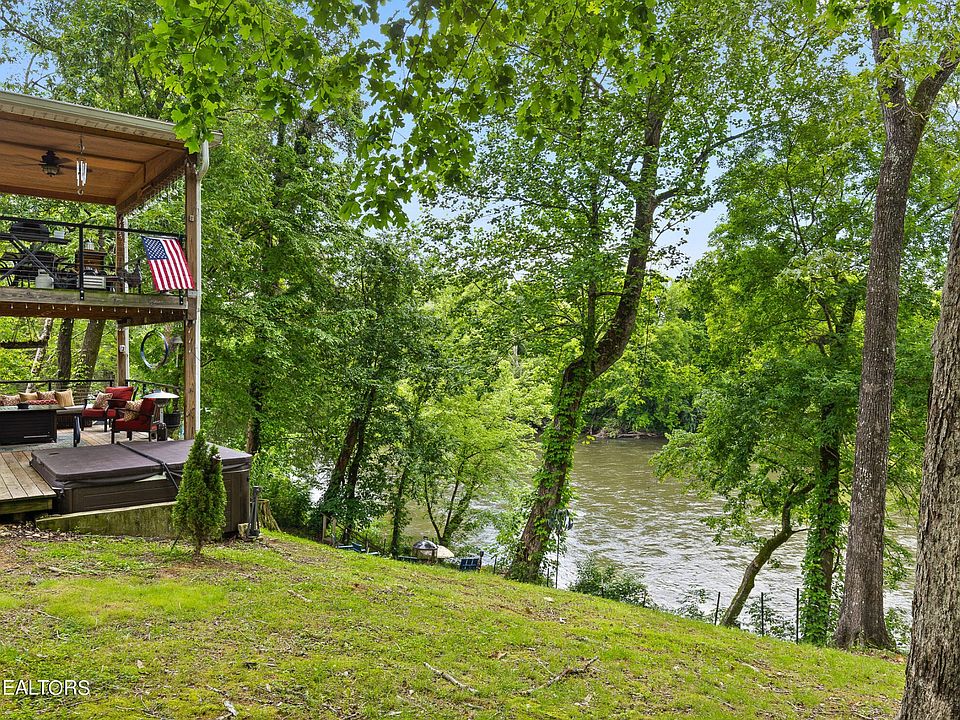 Come tour this waterfront retreat with it's own private beach! This gorgeous A-Frame basement home boasts beautiful views of the Hiawassee River and is minutes from the Hiawassee River State Park and public boat launch. Take in the spectacular views from the main level deck, or relax with your favorite beverage off the lower level bar room deck and watch the paddle boarders, kayakers ad tubers float on by. Take in the stunning evening skies while relaxing in the hot tub or roasting s'mores around the fire. This home is sure to bring memories that will last a lifetime! Schedule your private tour today!