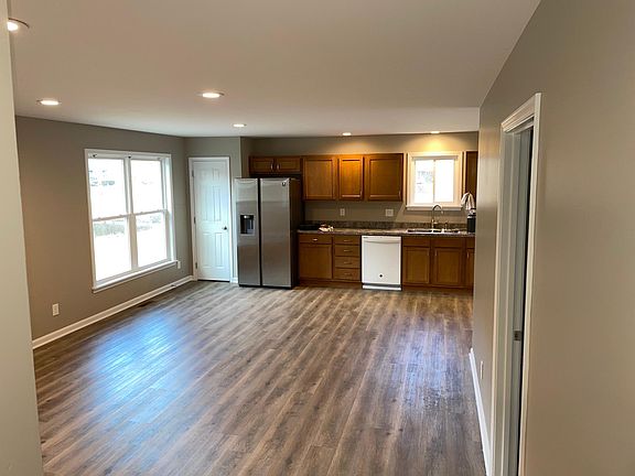 New home built in 2021. Large open kitchen/ living room, three bedrooms, one full bathroom and washer and dryer hookup on main level with vinyl plank floors throughout. New carpet in bedrooms. Freshly painted. Rear entrance has one step to the main living area. Lower level has one bedroom with large closet, a full bath with step in shower, large storage area and access to the one car garage. Plenty of yard space. Tenants responsible for all utilities. Any pets must pre-approved, under 50 lbs and up to date on all vaccinations.