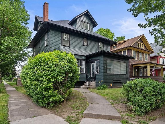 Check out this COMPLETELY REMODELED 4/5 bed 1.5 bath in the heart of Rochester! Full front and back covered porch, fresh paint and new tear off roof make this home maintenance free for years to come! Newly refinished hardwood floors, gum wood trim keep that old school character and charm. Brand new kitchen cabinets, stainless steel appliances and countertops. Remodeled half bath right off the family room. Upstairs has 4 large bedrooms and a master bedroom with its own balcony! Full bath is all new with a new tile shower! Full walkup attic is fully finished with a 5TH bedroom! So many upgrades, this is a must see! Delayed negotiations until Monday 6/24/24 at 11am. Open house Sunday 1-3pm