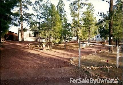 This is a beautiful mountain retreat that is ready to move into or the perfect building lot for the cabin of your dreams. This is a .75 acre lot that is amazingly flat, fully fenced, full of huge pine and oak trees, landscaped, and much more. 1989 Cavco 28x56, 3 bedroom, 2 bath mobile home with full metal roof, front and rear porches, 2 covered parking areas, and central heat and air. A matching 24 x 20 garage with matching roof, and workshop area. This beautiful home is ready to move into, or ideal for building a mountain dream cabin. Located in the Show Low city limits minutes from schools, shopping, and all the amenities of a quaint mountain town. Enjoy the luxury of mountain living without being far from the necessities. This .75 acre lot is a rare gem, that combines huge pines and flat terrain that lets you take advantage of all your property.Additional property info: http://www.forsalebyowner.com/listing/3-bed-Vacation-Home-for-sale-by-owner-393-S-30th-Avenue-85901/23937450?provider_id=28079