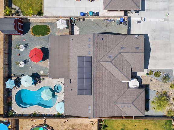 Check out this great 4 bed 2 bath home only 2 years old. It feature an open floor plan, upgraded white cabinets, granite counter tops, stainless steel appliances, low maintenance, water conserving landscaping front and back, red storage shed and refrigerator in garage included and beautiful pool and spa both heated with remote phone app. RV parking And did I mention it includes owned solar it's a must see hurry before it's gone