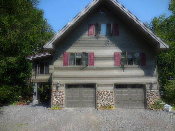 Custom built chalet on a level lot. Maintenance free exterior. All Anderson windows, large deck, stamped concrete walkway down to large dock. It has a new furnace. Central air, granite kitchen countertops with custom cabinetry, custom oak spiral stairs, 6 feet in diameter, with flared tread. Newer roof, 3 years old. Two-car heated garage, plus a 36'x36' detached garage with carport to store your boats and toys. Very private setting; a must see for yourself! Owner is listing agent and custom builder. Please call for an appointment.