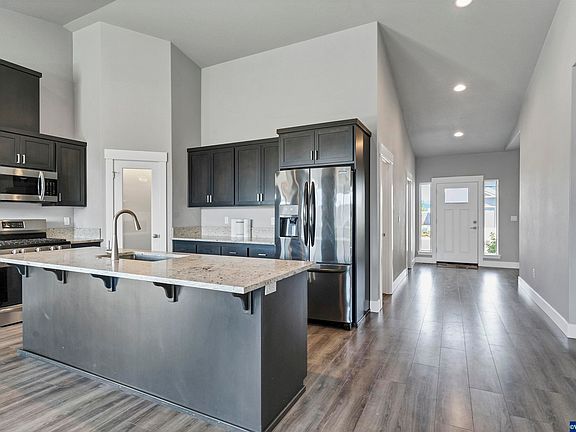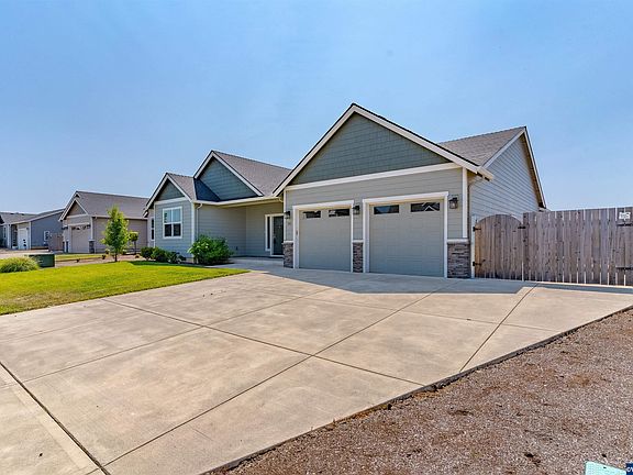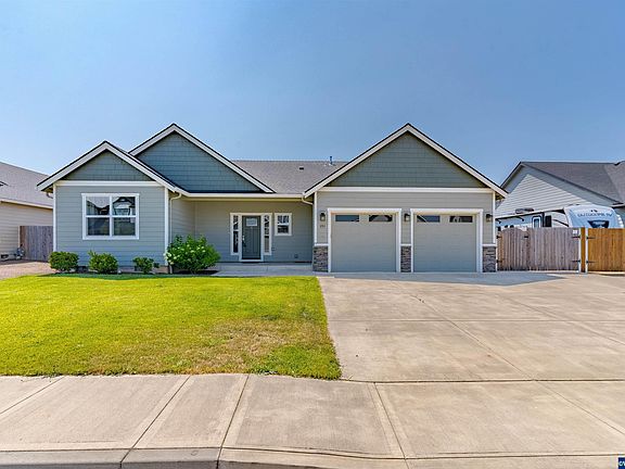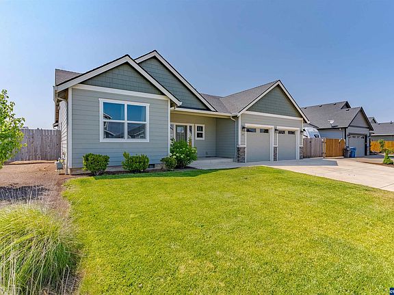 Single level newer construction! Stunning views of the Cascades! Large open concept Great Rm/Din. Rm area features vaulted ceiling, custom cabinets, granite or quartz counters throughout, & Utility Rm. Spacious master w/ full tile shower & soaker tub. Cov. patio, fully landscaped & fenced, UGS, and AC. RV pad. Home comes with a 3 car garage, gas FA & water heater. Listing agent related to seller.