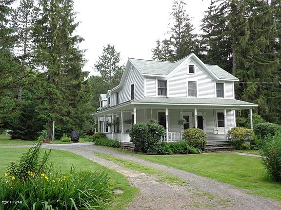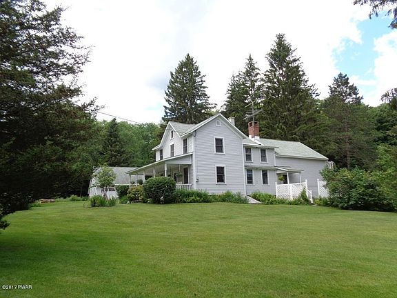 AMAZING FARM on over 12 acres, excellent location, close to everything! First time available in 3 generations. Renovated and meticulously maintained. Traditional farmhouse, hardwood floors, new modern addition with vaulted ceilings, extra large brick fireplace, loft and balcony. 3+ bdrm, master suite, office, eat in kitchen and formal dining room. 2 barns, paddock, large detached garage, chicken house, springs and trails. Additional acreage available. Low taxes! Minutes to motor boating Lake Wallenpaupack, shopping, and I-84. Commutable 2 hours from NYC.