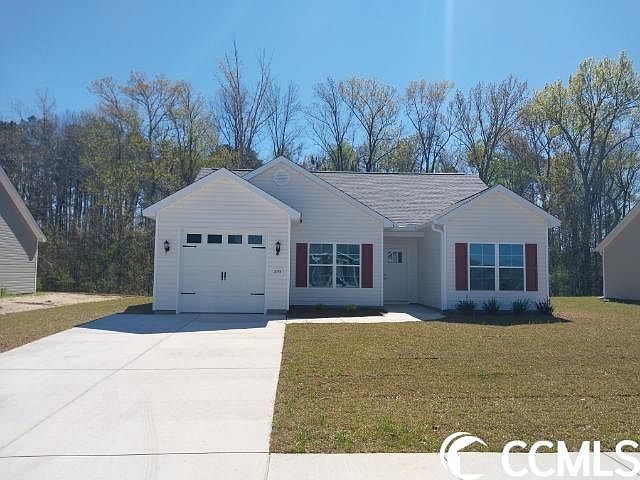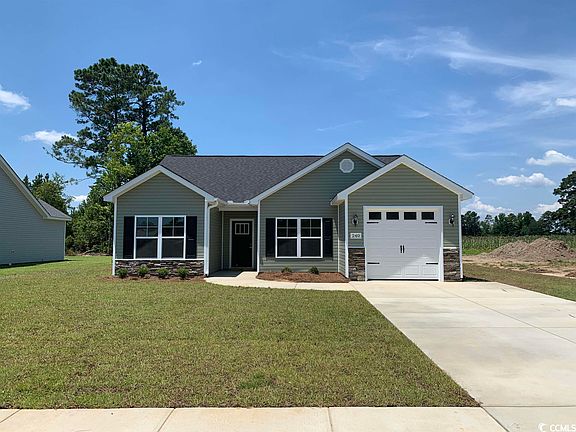 The Payton plan is a 3 bedroom/2 bath plan located in the Windsor Farms community in Conway SC. The interior of this home comes standard with granite countertops in the kitchen and both bathrooms, cabinets with crown molding and soft close drawers, stainless steel appliances, 12x24 tile flooring in both bathrooms with vinyl throughout the rest of the home, 9 ft or vaulted ceilings, elongated toilets, ceiling fans in all bedrooms and the living room, LED flushed lighting, pendant lights and much more. The exterior of the home will have an irrigation system, completely sodded yard with plant beds, a covered rear porch and a garage door with remotes. The Payton is a one car garage plan, however it comes with a designed driveway that has more concrete than a normal one car plan to accommodate homeowners with multiple vehicles. Windsor Farms is located outside the city limits and is only a 5 minute drive to Historic downtown Conway and only 30 minutes from the beach. Pictures may vary depending on buyer design choices.