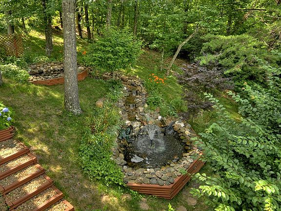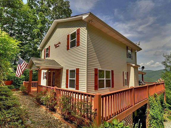 Amazing long range mountain views await you at this beautiful, furnished, TN home!Would make a great B&B.Also features a beautiful man made double pond with fountain & waterfall. Terraced landscaping for your vegetable and/or flower gardens, several mature fruit trees, SECLUSION, low maintenance, & central location for easy access to Murphy, Blue Ridge, Chattanooga & Atlanta. Large MB & bath with jacuzzi tub; plenty of covered porch space; Corian countertops, ss appliances, gas range & oak cabinetry in kitchen, stone fireplace in living area; terrace level has storage room accessible by exterior & interior, game/family room w/gas log fireplace that has built-in for TV, PLUS oak slate pool table PLUS walk out to gorgeous brick patio & hot tub!
