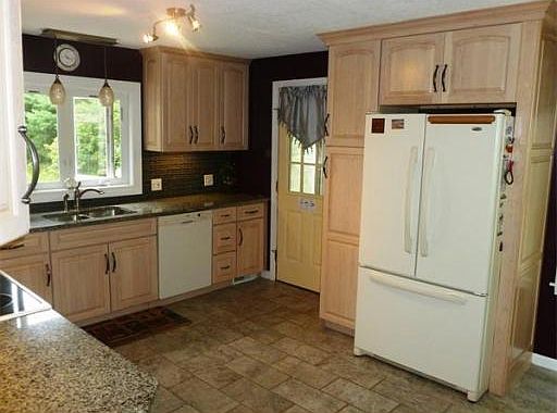 You will be impressed with this custom remodeled kitchen with granite counter tops,ceramic tile floor , fabulous backsplash + more in this well loved ranch. Many replacement windows + updates through out. Also featuring an "azac" deck,12x20 portable garage, 2 sheds + a finished breezeway/sun room.Frig,stove ,dishwasher & micro are all included. Make your appointment today ! .