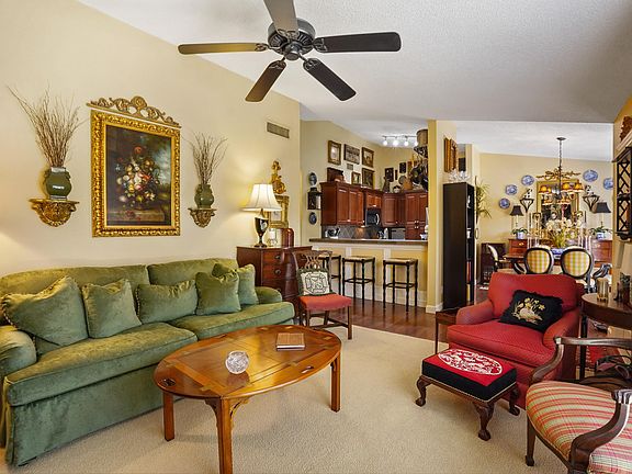 Discover the charm of villa living in the highly sought-after Springdale Homes community of Palm Springs, FL. This delightful 2-bedroom, 2-bathroom villa welcomes you with a private front patio, complete with shutters for added privacy. Step inside to find an inviting open floor plan that seamlessly connects the living, dining, and kitchen areas, all under vaulted ceilings that enhance the sense of space. The kitchen features a tasteful tiled backsplash, a breakfast bar for casual dining, and ample cabinetry, making it a perfect spot for both cooking and gathering. The villa's thoughtful layout includes a well-sized office space, ideal for working from home or pursuing hobbies. The main bedroom is a true retreat, offering an ensuite bath with dual sinks and a spacious closet. A dedicated laundry room adds convenience to your daily routine, ensuring everything you need is right at your fingertips. The split-bedroom design provides privacy, making it an excellent choice for families or guests.