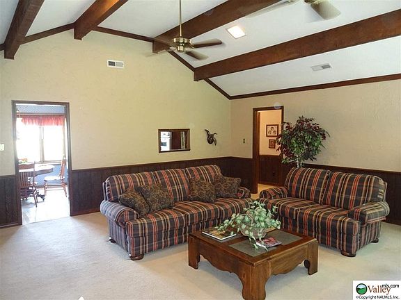 You must see this beautiful home. Living rom has exposed beams, with a cathedral ceiling, fireplace gas logs and built in shelves. This three bedroom two bath home with manicured lawn on 4.5 acres is ready for your family. Large wood deck over looking a wooded area, two car attached garage and two car detached garage. Creek goes across the back of the property.