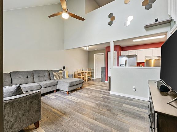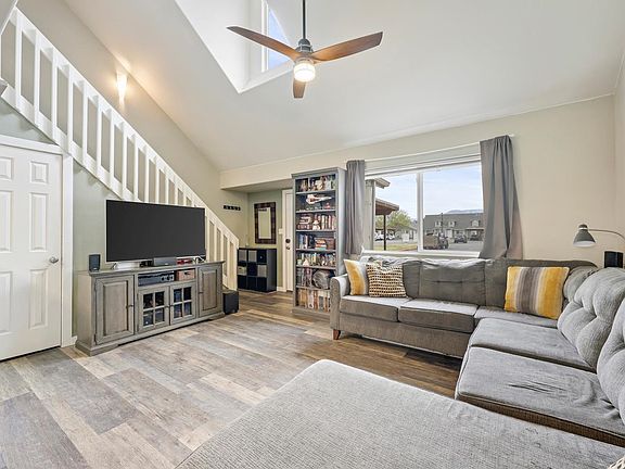 Welcome to your new beautiful home in the Riverbend Townhomes neighborhood of Southeast Grand Junction! This townhome offers a blend of convenience and comfort, situated just moments away from the town's amenities, including shopping centers, schools, lush parks, and a short walk from the Riverfront Trail. Step inside and be captivated by the airy ambiance of this home. The open living area welcomes you with its vaulted ceilings, adorned with elegant wood laminate flooring that adds warmth and character to the space. Natural light pours in through the windows, creating an inviting atmosphere throughout. The heart of the home lies in the combined kitchen and dining area. The kitchen contains stainless steel appliances, an electric range and dishwasher, while striking red accent walls and white cabinetry give personality to the room. Retreat to the primary bedroom, where your own space awaits. Access to the back patio allows for seamless indoor-outdoor living, while a full en-suite bathroom and a large built-in cabinet offers convenient storage. Ascend the stairs to discover a versatile loft area, ideal for a home office or additional living space. Here, you'll also find the laundry area, allowing for effortless organization and easy access. Two additional bedrooms and a second full bathroom complete the upper level, offering ample space. Outside, the xeriscaped backyard provides low-maintenance charm, and the uncovered back patio makes for the perfect spot to unwind and enjoy the fresh air. Convenience is key with the carport located just out front. The HOA takes care of home maintenance, common area upkeep, and insurance, allowing for worry-free living. Don’t miss the opportunity to make this your perfect space for convenient and comfy living. Schedule your showing today.