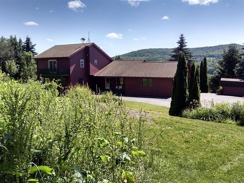 Light and Bright salt box style contemporary farmhouse with hilltop location for exceptional privacy and far-away views. Located seconds from golf and a few minutes from the village of Stamford for restaurants and shopping. Themain level includes a large dedicated office space or dena fully equipped eat-in kitchen...a formal dining room and a huge living room with a woodstove and doors to rhe front deckwith a pergola and distant mountain views...2 bedrooms and 2 baths complete the generous first level. On the second level you'll discover the HUGE master suite with a walk-in closet a full bath and a charming balcony with views to the meadows and beyond. There is an attached 2 car garage with heat and new insulated garage doors with access to the basement. The full heated partially finished basement includes a half bath and a spacious work shop area. Upgrades include a new GENERAC 8kw generator that can maintain heat, lighting refrigeration and water in case of a power failure. a well maintained 4 zone hot water heating system, an additional 230 volt electric service, and a new well pump. Located just outside the village of Stamford in the NW Catskills...30 minutesfrom downhill skiing at Windham or Hunter...3 hours from Manhattan, 1 hour from Albany and the Hudson Valley. COME and discover the beautiful NW Catskills !