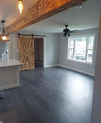 Completely remodeled 3 bed 1.5 bath open floor plan home located on a double lot in Scottsburg. Features include new roof, windows, siding, ac/furnace, plumbing and water pipes to the street, gutters, new insulation sprayed in attic and crawl space. New appliances(refrigerator, stove, microwave, dishwasher). All new electric ran through the entire house. The home features 3 beautiful sliding barn doors.