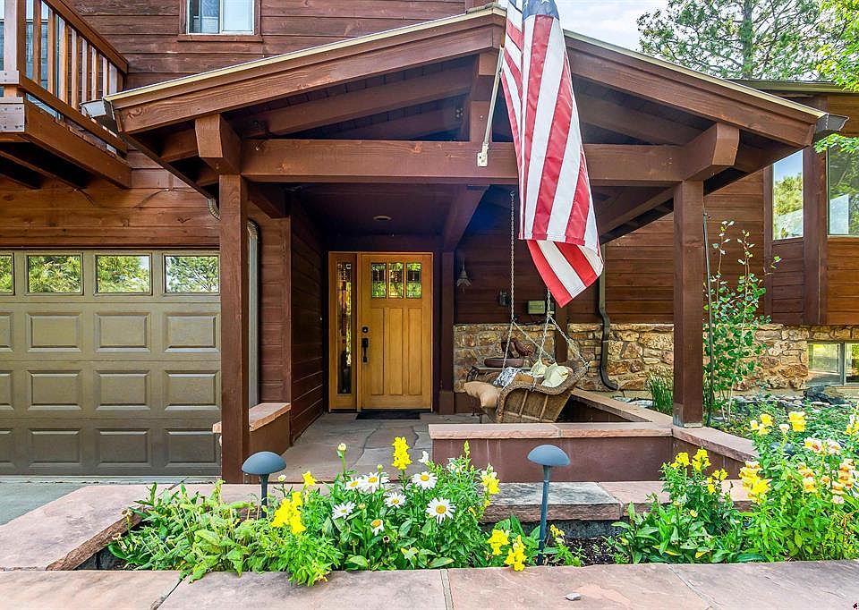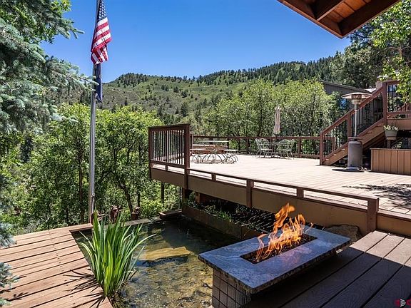 This beautiful home with outstanding amenities is located in highly desirable Timberline View Estates, just minutes from downtown Durango. Surrounded by incredible nature and views, the outdoor areas here are as impressive as the indoors, greatly increasing the living space. The outdoor kitchen, living and dining rooms on the roughly 1600sf deck overlooking valleys both near and far are perfect for Durango's excellent year-round weather. The far reaches of the deck surround a full-size hot tub, thoughtfully situated for stellar stargazing. The lower portion of the three level deck is covered for all-weather enjoyment, enhanced by a gas fire pit, waterfalls, an infinity-edged pond and a rock creek. The upper deck is equipped with a covered, built-in grill and counter. This is an incredible setting for entertainers as well as for everyday enjoyment. Inside the home is a layout that incorporates an open floor plan with enough separated spaces for everyone to be comfortable. The remodeled kitchen is open to the living and dining rooms, defined by a floor-to-ceiling rock gas fireplace. Upstairs are the primary suite with a private sunset balcony, as well as two more bedrooms and a full bath. On the lower level is a sanctuary with a fourth bedroom, bathroom, living room, wet bar and a Vermont Castings wood stove, possibly making it the coziest part of the home. The whole house is cooled off in the hottest parts of the summer by a thermostatically controlled attic vent, an evaporative cooler and an AC unit in the primary bedroom. On top of all this is a heated two-car garage with a fantastic raised 300+sf workshop. Back outside, there's hiking and biking from the front door, the backyard borders Timberline open space leading to 554 acres of BLM land, and the neighborhood trailhead to this adventureland is only steps away. All this, just two minutes from Bread Bakery, Pop Sushi, Macho's Mexican, Star Liquors, the Durango Sports Club gym, a gas station, yoga studio, veterinarian, Mountain Dough Baking, Rose Duds and more makes this a home you'll want to come visit as soon as you can.