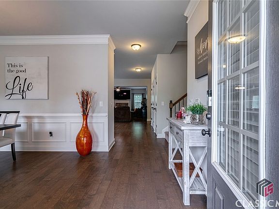This beautiful 3157 sq ft Craftsman home is located on a coveted back lot of Towns Walk neighborhood, overlooking the woods and McNutt's Creek. You will love that this home not only has a generous Owners' suite on the first floor, but a second Owners' suite on the second floor. In addition, you'll find 2 more bedrooms with vaulted ceilings and another full bathroom upstairs.