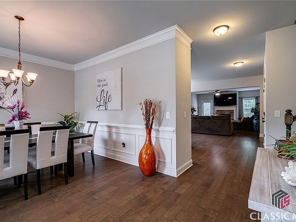 On the first floor you will appreciate the covered front porch entrance that leads to the foyer and separate formal dining room. The rest of the first floor offers an open floor plan that is perfect for entertaining. The kitchen includes granite countertops, under-cabinet lighting, a tile backsplash and an island. The kitchen flows into a sizable living room with crown moulding, a fireplace and access to a freshly painted deck that overlooks the ample yard and possibly some wildlife! Off of the living room you will find an impressive Owner's suite with tray ceilings and crown moulding that leads to a large bathroom with double vanities, granite countertops, tile shower, soaking tub and spacious closet. Also included on the first floor is a half bath and laundry room..