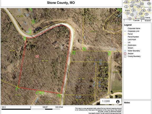 Lake view walkout basement on 8 private acres. Well maintained 3 bedroom, 2 bath with detached 24x24 shop. Wood burning fireplace on main level, large deck and patio, private well. Long private lane entrance and only one half mile off Hwy 86 and less than two miles west of Dogwood Canyon. New furnace, air conditioner and septic tank in 2014. Boat slip available for additional cost.
