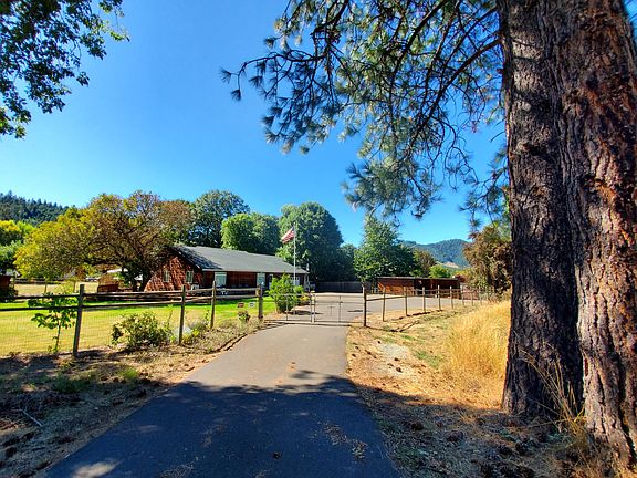 Beautifully landscaped level lot on .54 of an acre. Lrg kitchen w/pantry, slab granite counters & Island. Spilt floorplan w/ lrg primary Bdr on one side. It has a walk in closet & attached full bathroom w/tub shower combo & double sinks w/door leading to covered deck. 3 Bdrs on the other side. One of those bdrs also has an attached full bath w/ washer & dryer. Living room has vaulted ceilings & a rock fireplace. Wood deck wraps almost all the way around the house. Back deck is covered. Lrg Side deck is graced w/a grand old Buckeye tree. Garden area. Multiple fruit trees: Cherry, Apple, & Plum. Nice grape arbor. 2 car attached garage. Carport with attached 10x10 shed with shelving. Nice workshop outbuilding and covered wood shed. Sit on your front deck and enjoy expansive views of pasture & mountains w/a seasonal creek. Fire pit area.