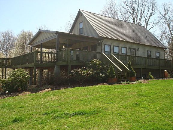 This beautiful 28 acre hillside estate with wide range views near the Blue Ridge Parkway features a main house with 3 bedroom , 2.5 bath, The home also has a wood burning or gas log fireplace, eat in kitchen , oak flooring, metal roof, wrap around deck and covered patio overlooking the countryside, Both great for entertaining. The house has thermo-pane windows with storm windows. There is also a 500 gallon underground propane tank. The guest quarters are located in a remodeled 14 x 74 mobile home with vinyl siding., metal roof, covered deck & 186 sq ft sun room with gas logs. The property also features: 1 car 24' x 60' block garage with 33' x 24' heated workshop area, a 24' x 60' wood equipment shed, a 28' x 16'wood garage/workshop and a 8 x 8 wood shed. There is extensive landscaping around the property including a nice variety of plants and pear & apple trees, fencing around the acreage for cattle or horses and a tree lined drive into the estate. Property has a spring and stream.