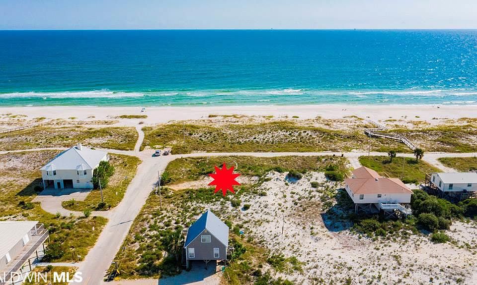 Build your dream beach house for personal use and/or for rental investment on this wonderful, square, corner gulf front lot in coveted Government Subdivision. Lot has gorgeous, unobstructed views south, east and west across the sugar white sands and emerald green waters of the Gulf of Mexico. This subdivision is just after the 100s of acres of the Bon Secour National Wildlife Refuge. Already has an ITP to build your home on the previous footprint which will help make your building costs be less. The current incidental take is for 2600sf to 2700sf of ground coverage. You can build quite a big house. If you wish to maximize the buildable area allowed, all you need is an updated letter from Fish and Wildlife. In this subdivision called Government Subdivision, the gulf front lots are along the one lane gravel roads, Fishhouse Rd and Chewning Ln. Driveway for this lot would be on the paved Veterans road.The land south of the these is all owned and set aside by the US Department of the Interior and will not be built upon. Hence the unobstructed gulf views and access. This lot is at only $4165.91/FF and 17,424 sf and other gulf front for sale off Chewning is $4819.28/FF and much smaller at 10,956sf.