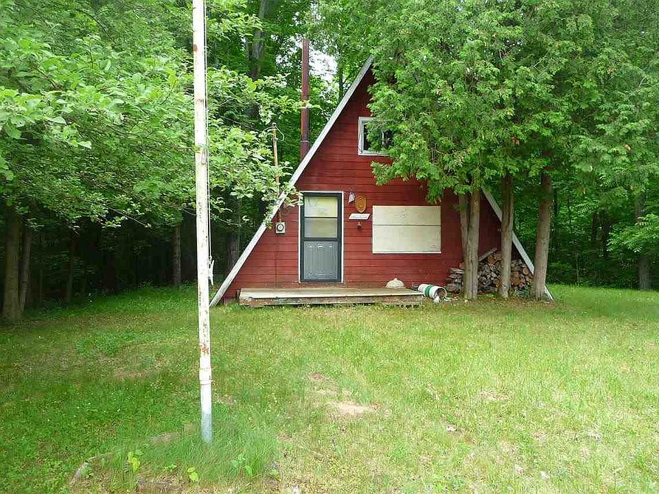 Handyman special 1 bedroom Chalet with 13x17 loft for more sleeping quarters above. Has woodstove for heat. A 8x13 shed for storage. No view of neighbors several apple trees and plenty of wildlife.
