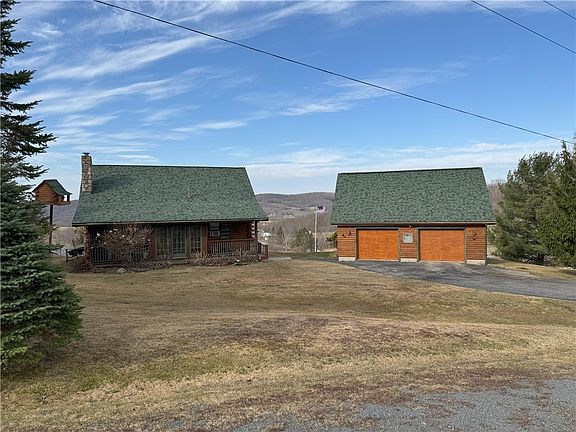 This stunning 2 bedroom, 1 ½ bath well built log home sits on over 7 surveyed acres on a dead end town maintained road. The inviting enclosed entryway features beautiful slate floors and opens on either side to covered porch areas. The living room with cathedral ceiling has a woodstove tucked in the corner which adds to the rustic charm of the house and provides plenty of warmth. The living room flows into the dining and kitchen areas. Cooking will be a delight in the beautifully renovated eat-in kitchen, complete with granite countertops, a commercial-grade range/oven with a Jenn Air range hood, custom blonde hickory cabinets and hand crafted island with storage and seating. Additional storage can be found in the pull-out pantry. A heated closed in porch off of the dining area allows you to enjoy the gorgeous mountain views during any season. Walk through the door onto a covered porch where you can enjoy the mountain breeze. A bedroom and full bath complete the first floor. Upstairs you will find a second bedroom, convenient half bath, and a sitting area overlooking the living room.