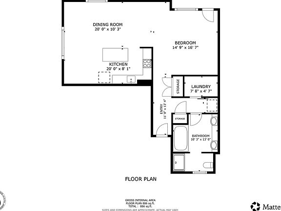 - Total interior livable area: 900 sqft