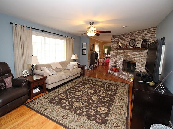 Brick ranch 4 bedroom, 2 full bathroom. Woodburning whitewashed fireplace in the living room. Gas log whitewashed fireplace in the dining room. Beautiful hardwood floors throughout the home. Laminate floors in the sunroom and kitchen. Kitchen has tile backsplash & commercial sink. Cedar lined closets. 2 car detached brick carport.Fire pit out back. Large front & back yard. Corner lot! Perfect Location!