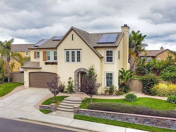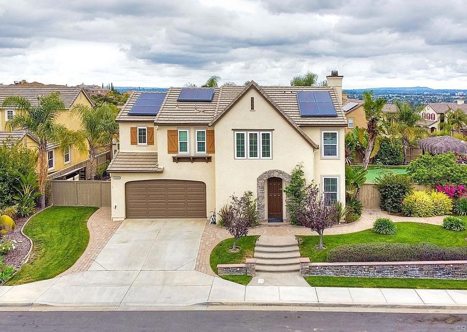 Welcome to this meticulously maintained home in the desirable Serramar community in La Mesa! Situated on a generous 0.25-acre corner lot, this property boasts breathtaking views. Enjoy the benefits of owned Tesla Solar panels and a built-in wall charger, reducing your electric bill while embracing sustainable living. Inside, you'll find fresh interior paint, upgraded engineered hardwood flooring on the lower level, and plush new carpeting in all bedrooms. The upstairs offers a versatile bonus room that can be transformed into a fourth bedroom or a productive home office. Each secondary bedroom comes with a convenient walk-in closet, while the primary bedroom spoils you with en-suite bath, a custom-built walk-in closet and a private 300 sqft Trex deck. Step outside to the entertainer's paradise in the backyard, featuring a built-in BBQ and sink, a cozy fire pit, a putting green for golf enthusiasts, a basketball hoop, and a charming palapa. The home also features an RO water system. With all these incredible amenities, what more could you ask for to create lasting memories with your loved ones?