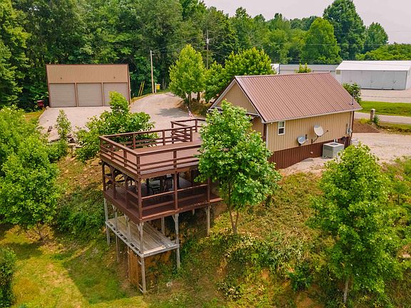 Lake View Cabin and 3 bay 40x40 garage with concrete and its own electric and water meter with hook up for RV! Cabin is 2 bedrooms (no closets) + a loft and 1 full bathroom. 640 sq ft on the main level plus the loft. Just a couple miles to Wolf Creek Marina! Other ramps nearby as well. Approx 1 acre.