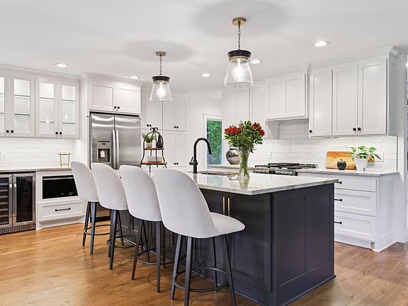 Charming and perfectly updated, this home has recently gone through a major transformation from top to bottom, inside and out! Everything has been touched... new roof, new HVAC mechanicals, new electrical wiring and plumbing, new windows, new gutters/downspouts, new garage doors, new siding on back and fresh paint on the front, new insulation in the attic, new hardwood floors. Step inside to discover beautiful designer selections and finishes throughout the home, including the updated kitchen, bathrooms, and laundry room, all featuring new appliances, flooring, and fixtures perfectly blending functionality and style. Main level offers an open floor plan that's ideal for entertaining and everyday living, complete with a light-filled living room with new electric fireplace, dining area with custom built-in buffet, and cozy sitting room offering direct access to the large deck. Downstairs, the lower level extends your living space with its finished rec room, dry bar with wine cooler, versatile flex room and the home's third bedroom with full bath. Outside, enjoy a large, level backyard with mature trees offering privacy and plenty of space to run and play, all situated on a serene one acre lot.