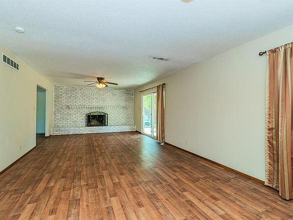 This clean 3 bedroom 2 bath home is ready to go. The first thing you notice as you approach the home is the low maintenance drought resistant landscaping throughout the front yard. Inside, the galley kitchen is immediately to your left and directly ahead is the spacious living room with vinyl flooring, a painted brick fireplace, overhead ceiling fans, and a sliding door leading to the backyard. The kitchen has an electric cooktop, an eating area, white cabinets, dish washing machine, and a built in oven. Down the hall are three bedrooms and two baths. The primary suite has an extra space perfect for a sitting area or private office and the bathroom has an exterior access door. In addition to all this, there is an interior laundry room off the garage with electric hook ups. This home is ready for the next owner to make it their own.