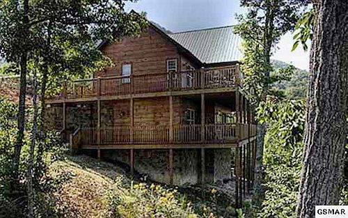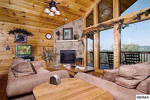 GREAT VALUE!!!! This cabin offers panoramic views through a 2 story wall of windows and is a very good rental producer on Timbercreek's program. Getaway has 3 king master suites, 1 queen master suite, a sleep sofa and log bunk beds, sleeping 16 total so bring the whole clan. Plenty of parking -approx. space 5 cars and also handicap accessible ramp and steps. This cabin is loaded with all the goodies - pool table, foosball, air hockey, dvd player, 4 TVs, 3 whirlpool tubs. The decks offer over 740 sq ft. of viewing pleasure, a porch swing, hot tub and lots of seating for relaxing and gazing at the sunset and unending range of mountains.