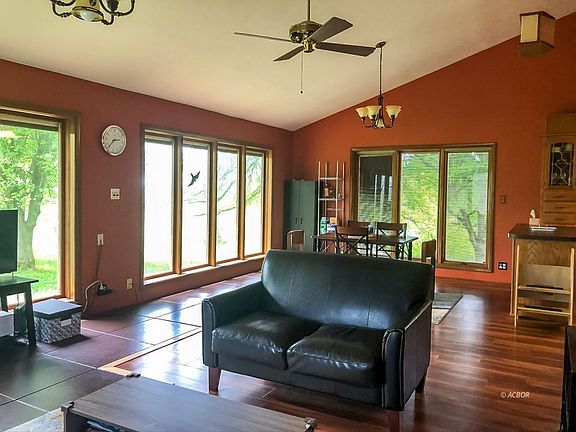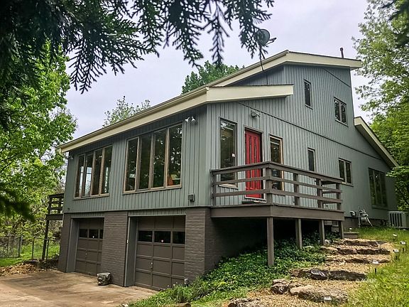 Privately situated at the end of long, scenic driveway is this move-in-ready, contemporary 3+ BR home on 5+ parklike acres. Built in the mid-80s, this home has been well cared for and boasts the best features of open design, including a commodious great room with vaulted ceilings & lots of windows that bathe the room in natural light. The kitchen is tucked off in the margins so the chef in the family can run a tight ship while still keeping tabs on everyone's activities in the great room. But there are plenty of "away" spaces here too, including a large (also main-level) sunroom that can be put to multiple (and simultaneous) functions: office, play area, reading or media room, music room" -- you name it! There's even ANOTHER away area in the lower level, a room big enough for a family den or even a potential living room for a lower-level apartment. Bedrooms are broadcast across 3 levels, with the upper level boasting an extra large master suite w/ private bath and bonus area large enough for office, nursery, workout area" -- or all three! Rounding out the bedrooms is a potential 4th bedroom in the lower level. Bonuses include fenced back yard, garden areas, big trees, & more!