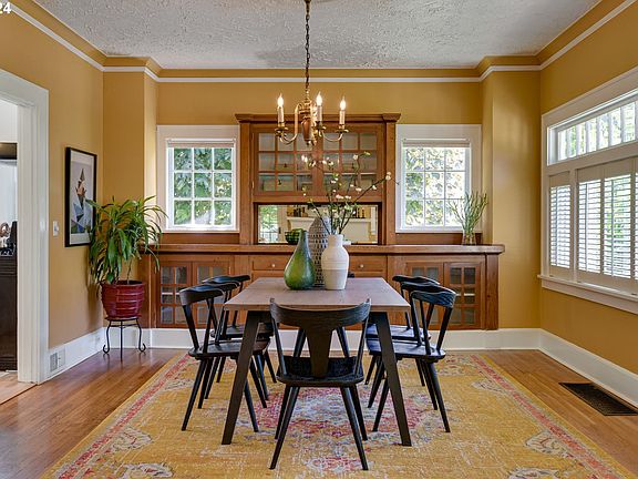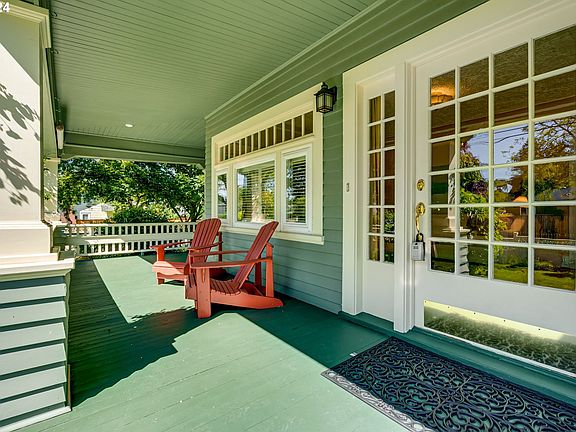 Welcome to this exquisite craftsman home featuring a large wrap-around porch, ideal for enjoying the seasons. Inside, the formal dining room showcases beautiful wood built-ins, while a stately fireplace centers the living room. The main floor includes two spacious bedrooms, a full bath, laundry room, and a light-filled kitchen. A heat pump ensures year-round comfort.The home's generous layout can easily accommodate guests, private offices, and projects with ease. This property is a legal duplex, and the upstairs is a fully operational two-bedroom, one-bathroom apartment, permitted and registered with Airbnb, generating a 3 year annual income average of approximately $20,000/year. Accessed via an exterior staircase to a private driveway, the space is climate controlled with mini split heat pumps.The basement is partially finished with a full bathroom, one non conforming bedroom, 2 additional bonus rooms, and a large unfinished section perfect for storage with an exterior door to the yard. Ample storage is also available in three compact outbuildings, providing plenty of room for all your needs.This property offers endless possibilities with an income-generating upper level. The beautifully landscaped yard, filled with bushes, flowers, and trees, consistently impresses visitors. Enjoy stunning views year-round: lush green in summer and spring, vibrant fall foliage, and a cool winter landscape. This is a large corner lot, mostly fenced. With easy bus and freeway access, commuting is hassle-free. Conveniently located near the airport, outdoor activities in the gorge, and downtown. This home perfectly blends elegance and convenience. Offer deadline Monday, May 20 at noon. [Home Energy Score = 6. HES Report at https://rpt.greenbuildingregistry.com/hes/OR10221416]