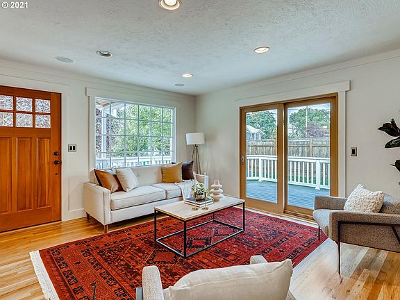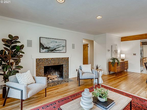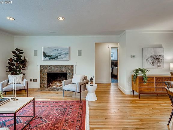 Captivating Ranch on a corner lot is oasis w/mutiple outdoor spaces & fabulous floor plan.Refinished oak hardwds, 2 fireplaces.Open concept.Sunny kitchen w/eat in bar + granite.Stunning bath w/soaking tub+skylight.Primary room on main. Lwr level could be sep. unit w/full bath,bedrm,new carpet,Radon sys.Attached garage,parking in back for RV/tiny home?Zoned for duplex!Think out of the box here.Blks to New seasons & NE 42nd rest.Easy acce NE 30th rest row & Fernhill park. Excellent location! [Home Energy Score = 4. HES Report at https://rpt.greenbuildingregistry.com/hes/OR10194568]