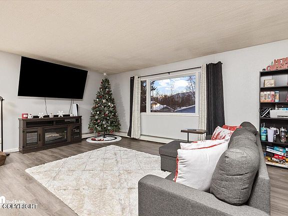 Refreshed home with plenty of natural light & views. Sliding glass door opens to a spacious deck & large fenced yard! Fire pit outside & cozy fireplace inside. Fresh paint, many updates, & LVP flooring. Extra living space downstairs. XL one car garage with space for workbench, Alaskan toys, or gym. Near multiple parks, Campbell Creek trails, quick commute to JBER, university, & hospital.