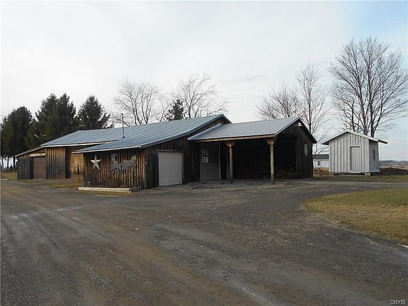 This secluded property has so much to offer on 45.54 acres. 3 bedrooms w/ 2 baths includes the master bath. Lovely layout featuring hardwood floors in the dining room, 3 bay picture window and French doors. Heated, attached garage/mudroom. Heated 22x88' tractor garage w/150amp, camp 20x31', 3 small hunting sheds 5 x 5', garden/pool shed 10x17' next to the above ground pool w/deck. In addition, there's a shed lean to 22x30', gas shed 8x12', two other outbuildings 10x13' & 20x14' and a wood storage shed on the 25 acres that's 20x16'. Also includes timber on the land that has not been cut in 20 years, a stone quarry, shale bed, sugar bush, great for hunting and other outdoor recreation and a small pond. Minutes from the golf course and Rt. 81 and a 10 minute drive to Greek Peak Ski Resort.