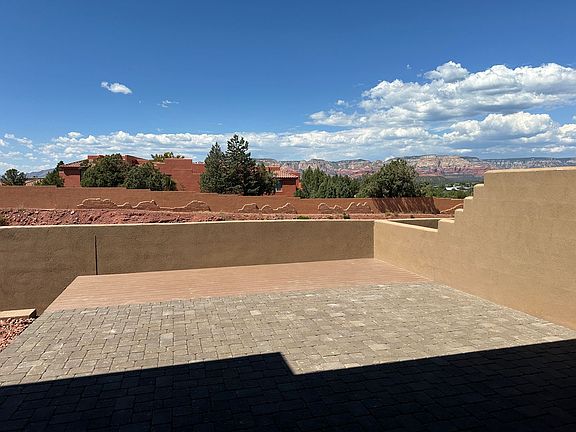 Popular floor plan in the newest gated townhome community in Sedona! Beautiful great room with red rock views, wood inspired plank flooring and gas fireplace. Large kitchen with island, quartz countertops, stainless steel appliances including a gas stove and lots of cabinets. Large windows to enjoy the red rock views and access to the patio. Two bedrooms, both with ensuite baths. Primary features views, walk-in closet, double vanity and large shower. Second bedroom with front patio, and full bath with tub/shower. There is also a half bath for guests, laundry room with full size appliances and a two car garage with epoxy finish floor and EV outlet. Enjoy the fabulous views while working out or relaxing in the hot tub at the Community Clubhouse. Park Place is a gated community on the edge of West Sedona close to the Northern Arizona Healthcare Medical Center and convenient to hiking, shopping and restaurants. No Pets.