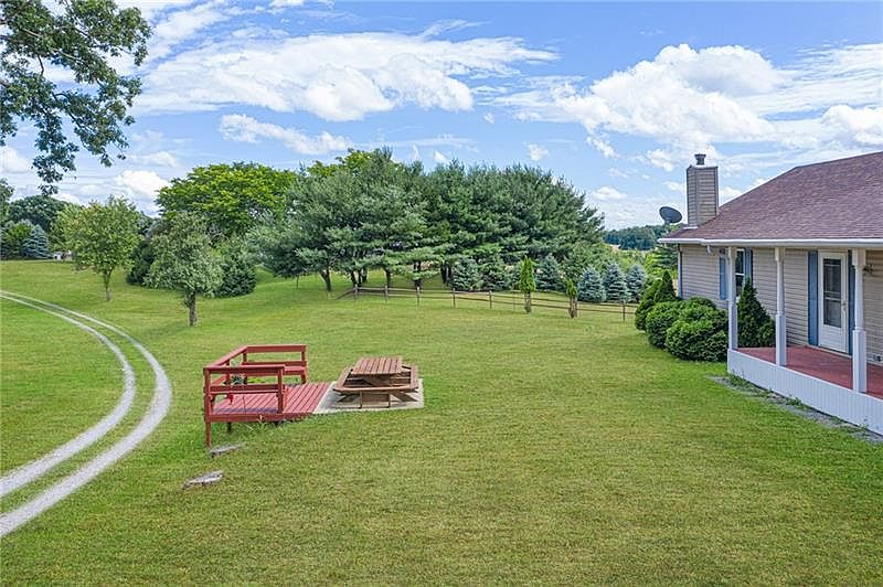 Almost 3 acres of beautiful land, rolling hills, and privacy! The large detached garage is a Collectors, Mechanics, or Craftsman's dream. Beautifully finished walk-out basement has a full bathroom and hook-ups for a second kitchen. Basement offers the option for a 3rd bedroom, guest suite or home office. Minutes from Farmers Markets, Giant Eagle, Shell Cracker Plant, State parks and the Pittsburgh International Airport.