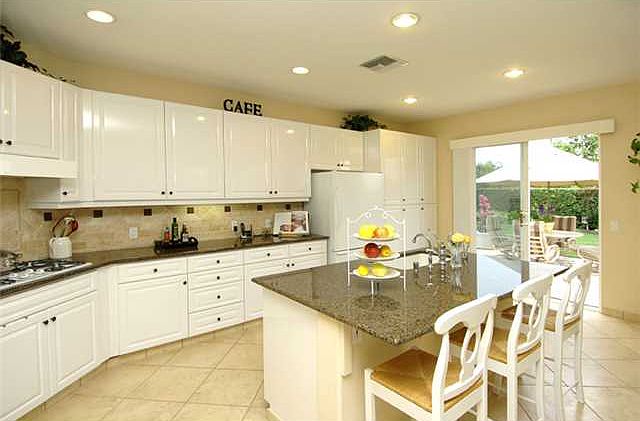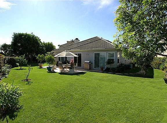 HUGE lot at top of CUL-DE-SAC! Sought after SINGLE STORY, former MODEL - and it still looks and shows like a model! Tons of upgrades, plenty of room for a pool, each bedroom has it's own bathroom. Granite counters in kitchen, air conditioning, whole house water filtration system, sliding door from master bedroom to the magnificant yard! You will love the roses in the parklike garden in the yard. Views of Mt Calavera! Wainscoting in the living room, built in bookshelves in the guest bedroom. See supplement
