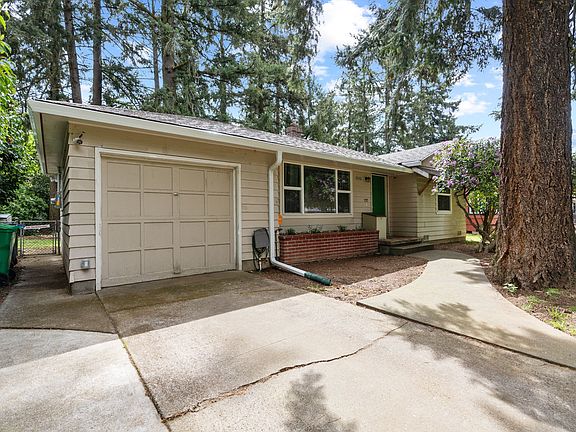Welcome to this charming ranch-style home nestled in a desirable and quiet neighborhood in Southeast Portland! This is a delightful 2-bedroom, 1-bathroom home which features original hardwood floors, a partially finished basement with a non-conforming bedroom/office, and an attached garage. Enjoy a remodeled bathroom, spacious bedrooms, and a convenient laundry area in the basement. All appliances stay! With an updated electrical panel, brand-new gutters, and sprinkler system, this home is move-in ready. Situated on a large lot with mature trees and a fire pit, it's the perfect canvas for creating your own tranquil retreat. Easy access to the 205, Powell Boulevard, public transit, and nearby to multiple parks. Don't miss out on this opportunity to embrace Portland's vibrant lifestyle!