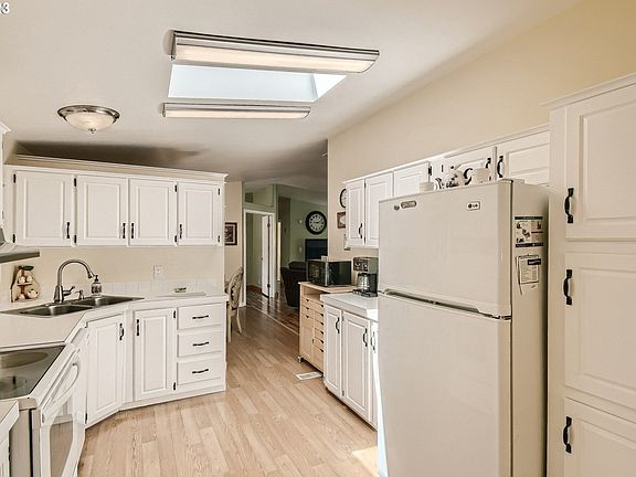 Gorgeous and spacious 1996 double-wide manufactured home that is move-in ready with wonderful touches throughout! Extremely well maintained and quiet 3 Bedroom, 2 bath with high ceilings, upgraded flooring, tons of natural light. Enjoy the backyard retreat with a large, covered patio, lawn and room to garden! Desirable 55+ Community at the base of Powell Butte Nature Park. This is one you definitely do not want to miss! Call today for private tour.