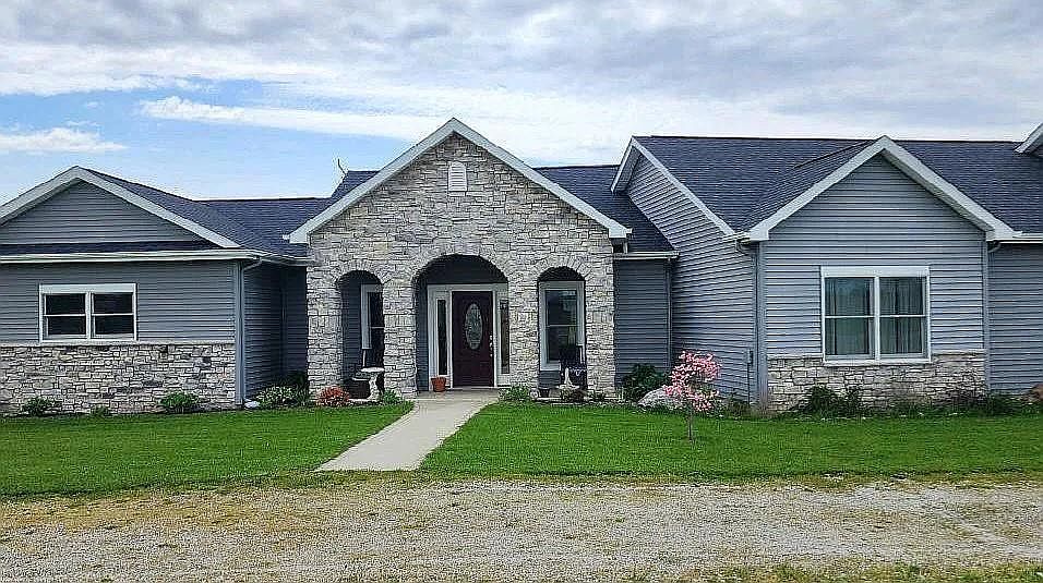 Sprawling ranch custom built by Carriage Place Homes sitting on +/- 7 acres with a large pond.