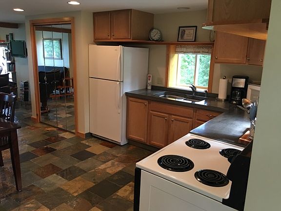 Beautiful priceless view. Turn key 2 bedroom, 1 bath four season cottage on beautiful 132 acre Lake Ellwood. Half acre of land and 50'+/- of cleared, sandy frontage. Gorgeous slate floors throughout, open kitchen, stackable washer/dryer, radiant in floor heat, free-standing fireplace, and a large back deck with stairs leading down to the dock and lake. Completely updated and remodeled. All appliances included. This cottage is virtually maintenance free and the view is breathtaking! Storage shed on property! New well, and septic is up to code. Enjoy watching the Bald Eagles from the deck.