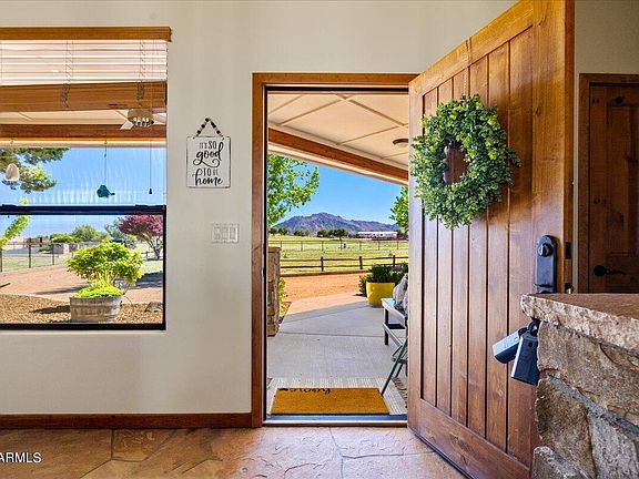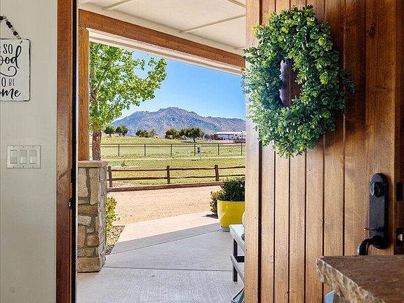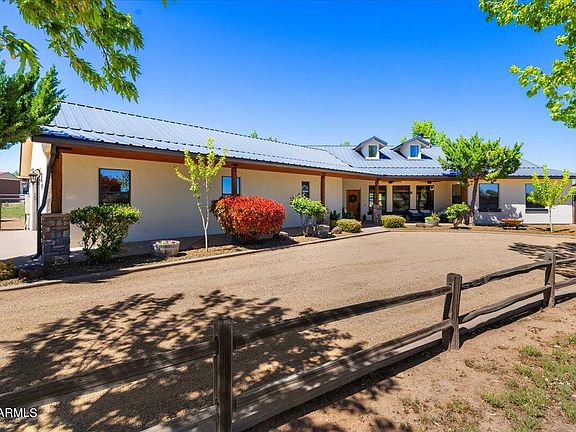 I'm Gorgeous Inside and Out! This pristine home is located in highly desired Williamson Valley Ranch. Plenty of level land for horses, gardening or car enthusiasts or all three. Spacious floor plan for ample living space with generous size bedrooms and walk-in closets. Over 50 trees and two large RV gates. Oversize 2 car garage and a large container with lighting, painted to match the home is included providing plenty of storage. Surrounded by horses and stunning views of iconic Granite Mountain. Running Iron Drive is waiting for you. Exterior is freshly painted as of a year ago. Come and relax on the covered front or back porch and take in the beautiful Arizona sunsets!