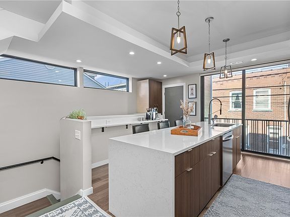 Designed by Cipriani Studios, this sleek 3-story contemporary home offers 3 bedrooms, 3.5 baths, with an integral garage. The striking exterior blends corrugated metal, Cumaru exotic wood, & Hardie panels. The entry level includes a guest suite or office with access to a low-maintenance fenced backyard. The second floor’s open-plan living & dining space is perfect for entertaining, with engineered wide-plank wood flooring, a luxury kitchen featuring quartz countertops, a waterfall island, & Samsung Tuscan SS appliances. Sunlight pours in through dual sliding glass doors. Automatic blinds – lower/raise automatically with sun set/rise. The third floor has a guest bedroom with a private bath & an expansive master suite with a walk-in closet & a beautifully tiled bathroom. Enjoy sunsets & privacy on the rooftop deck. Plus, you’re steps away from Happenstance Coffee, Ineffable Cafe, Trace Brewing, Tina’s, & just minutes from vibrant Butler Street! Modern living at its finest!