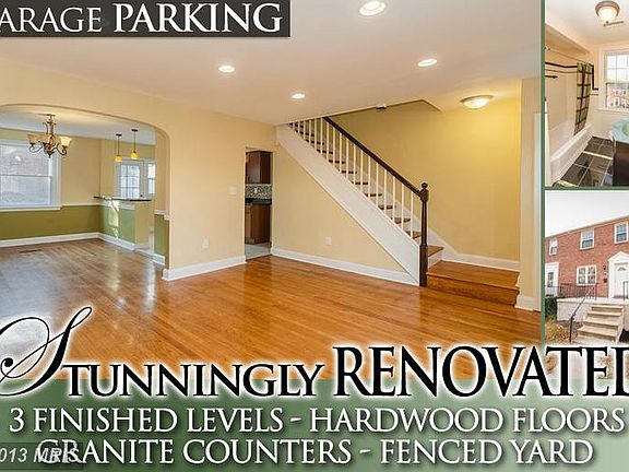 STUNNING RENOVATION WITH 3 FINISHED LEVELS & DETACHED GARAGE! Living room & separate dining room w/ hw floors, Chef's kitchen w/ breakfast bar, granite counters, ss appliances, & tile backsplash, 2nd level w/ 3 spacious bedrooms w/ hw floors & designer full bath, finished basement w/ bedroom & full bath, rear deck, fenced yard, & detached garage!